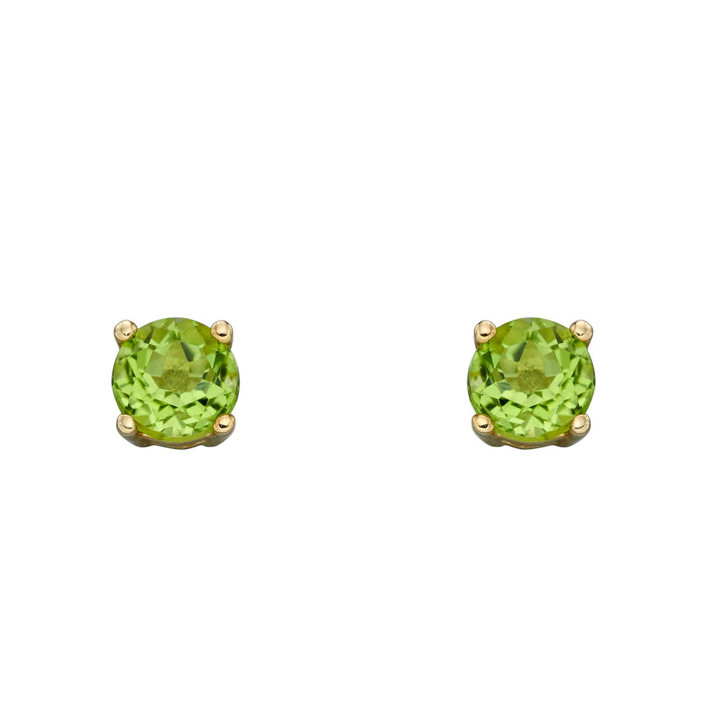 9ct gold and peridot single stone stud earrings. Diameter: 4mm. 0.6g.