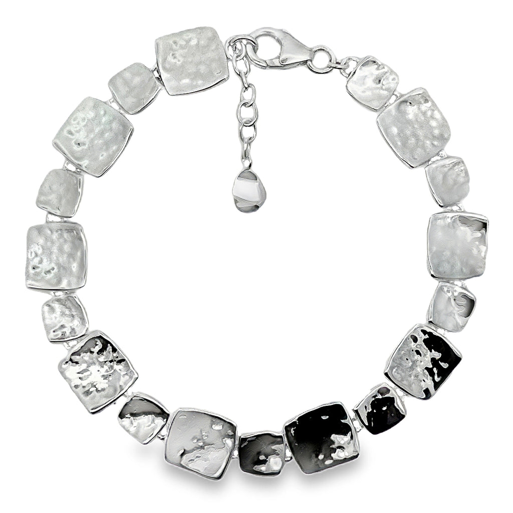 Sterling silver hammered squares bracelet. Length: 18-21cm. 12.3g.