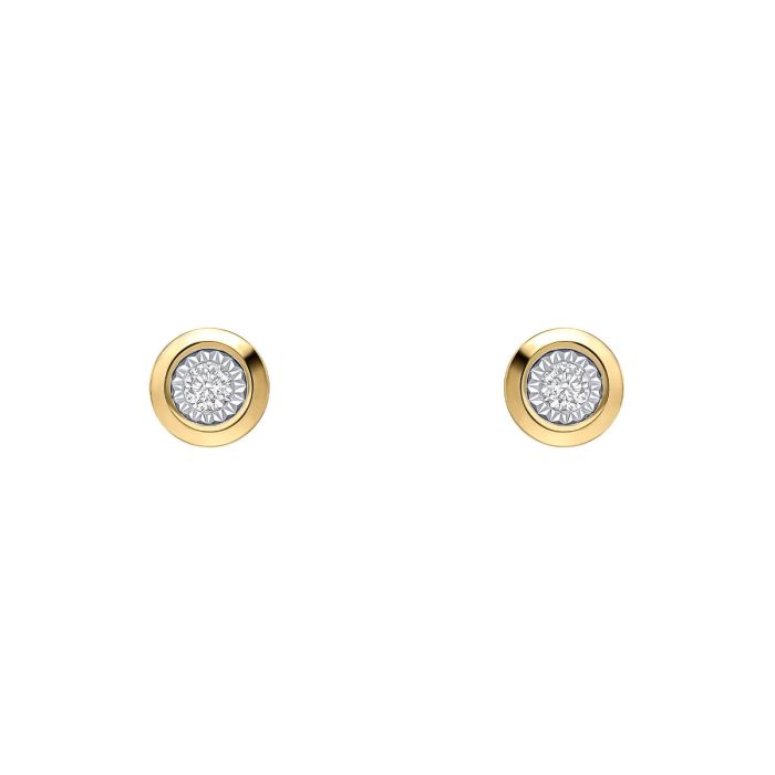 9ct gold and diamond bezel set stud earrings. Diameter: 4mm. 0.7g.